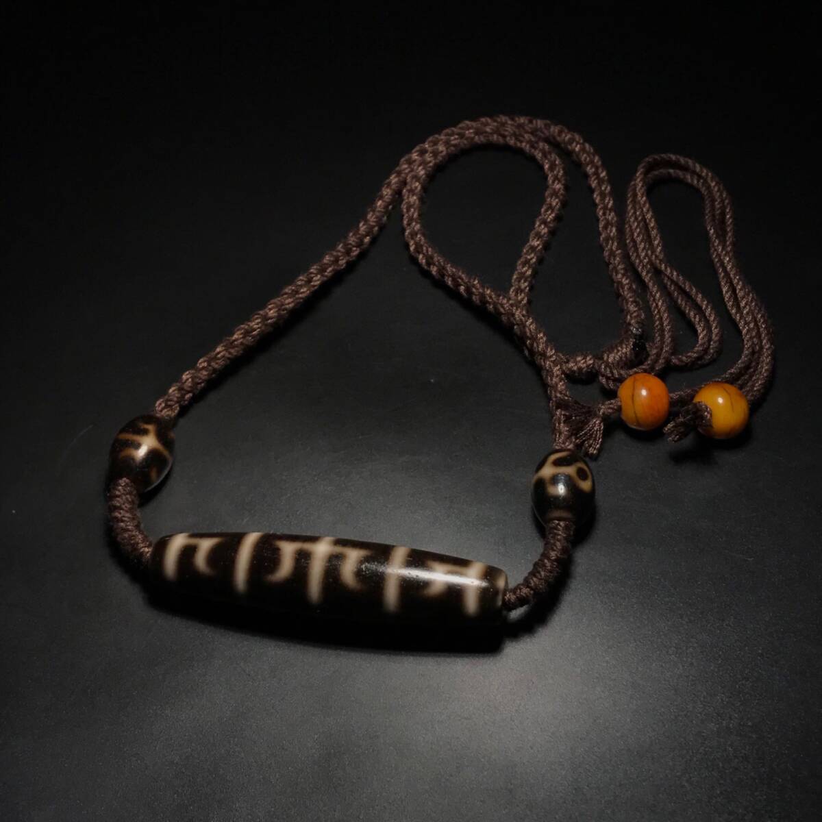 - 蔵友旧蔵出 瑪瑙製 細密彫 黑金 無界法器天珠 ネックレス本 高油包漿 根付裝身具 希少珍品 貴重品 置物 古賞物 中国古玩 中国古美術品