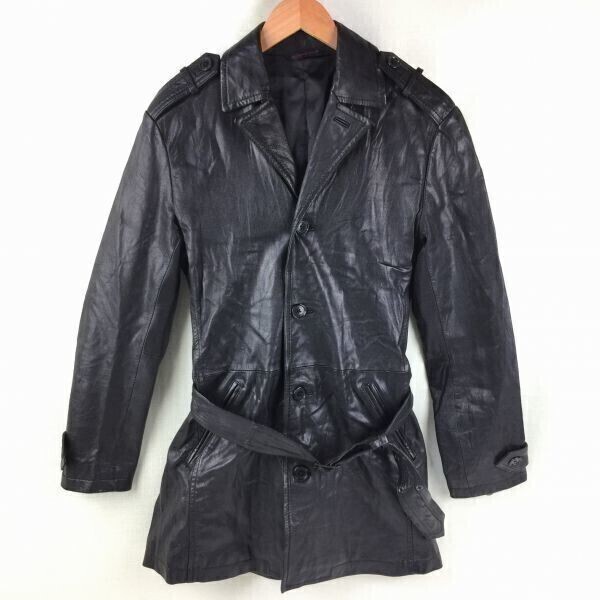 > CUSTOM CULTURE カスタムカルチャー 山羊革 ゴートスキン レザーコート トレンチ メンズ40 黒 管NO.Xじ57-9