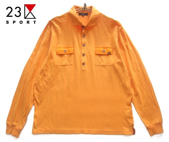 - 美品!!23区スポーツ 23区SPORT*金属ロゴプレート付き ダブルポケット 長袖ポロシャツ 3 実寸L オレンジ ゴルフ GOLF トラッド アイビー