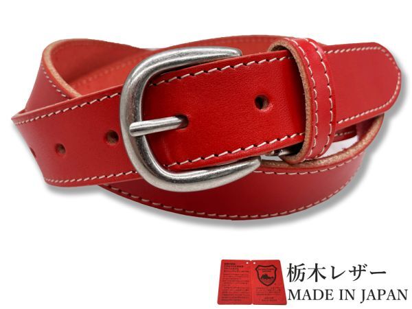 - 新品 栃木レザーベルト カジュアル 牛革 本革 一枚革 国産 メンズ レディース 30mm ステッチ 赤色 レッド w061-M-RED-NATURAL