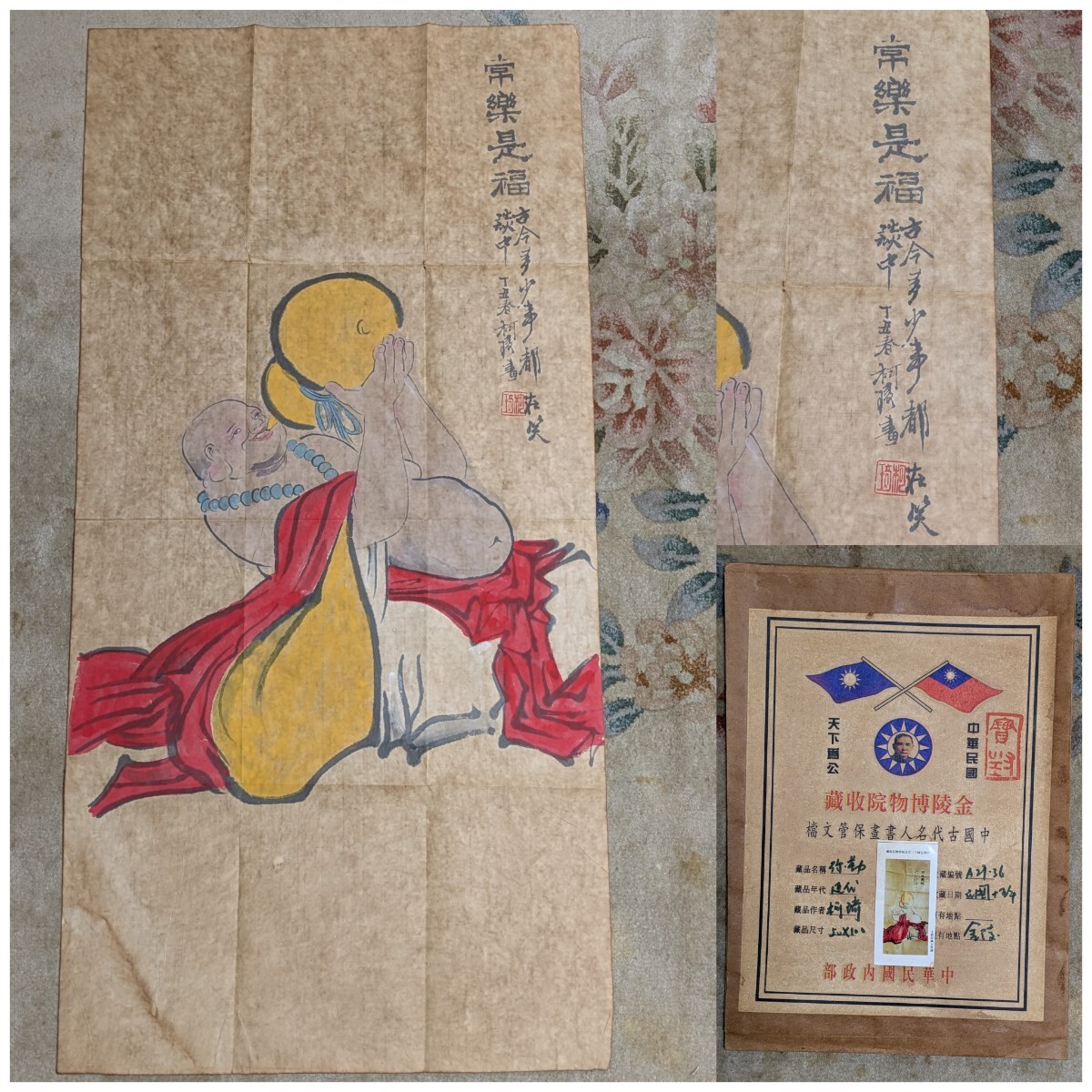 - 中華民國内政部 金陵博物院収蔵 中国古代名人書畫保管文档/人物 弥勤 水彩画 書画 中華民国 掛軸 まくり
