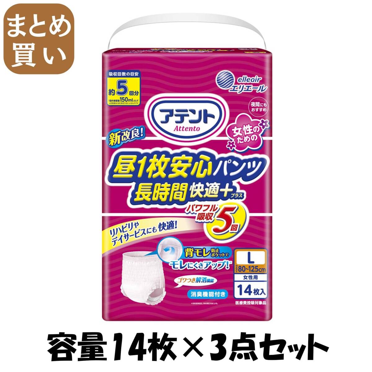 - 【まとめ買い】アテント昼1枚安心パンツ長時間快適プラスL女性用14枚 容量14マイ×3点セット 大王製紙 大人用オムツ