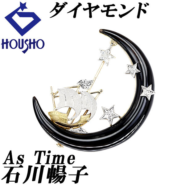 > 石川暢子/アズタイム ダイヤモンド K18YG Pt900 ペンダント 2way デザイナー 月 星 スター 海 船 宝正 901503
