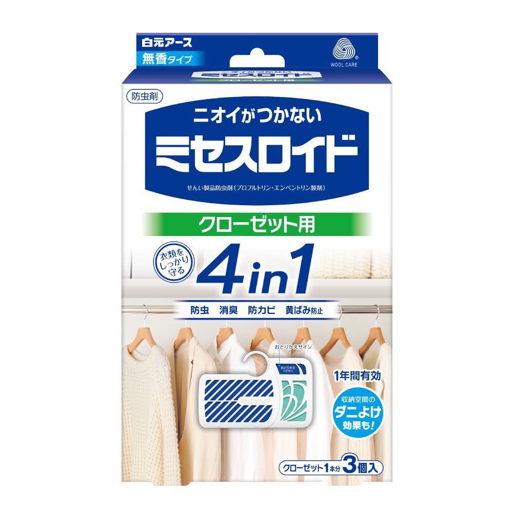 - ミセスロイド クローゼット用3個入 1年防虫 容量3コ白元アース 防虫剤