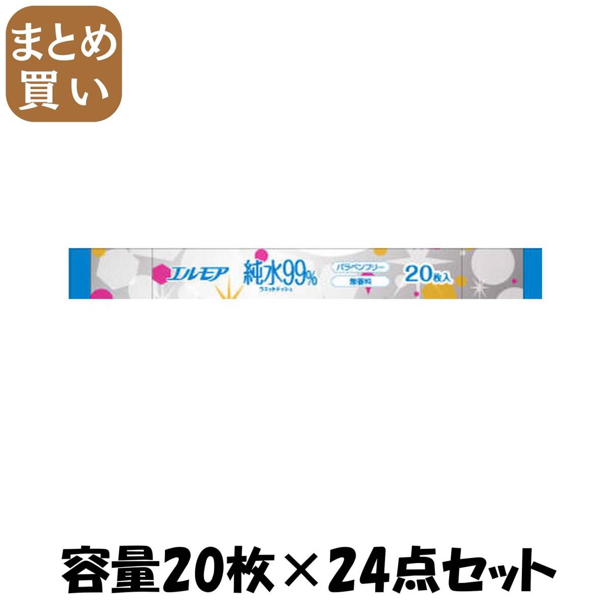 - 【まとめ買い】エルモア純水99%ノンアルコール20枚 容量20マイ×24点セット カミ商事 ウェットティッシュ