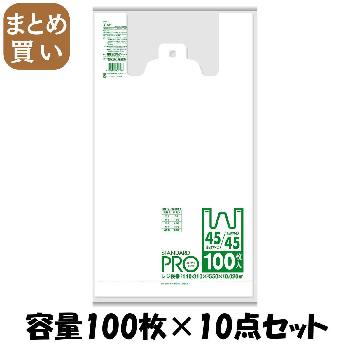 - 【まとめ買い】Y-8Hレジ袋NO45/45 100枚 白 容量100枚×10点セット 日本サニパック ポリ袋・レジ袋