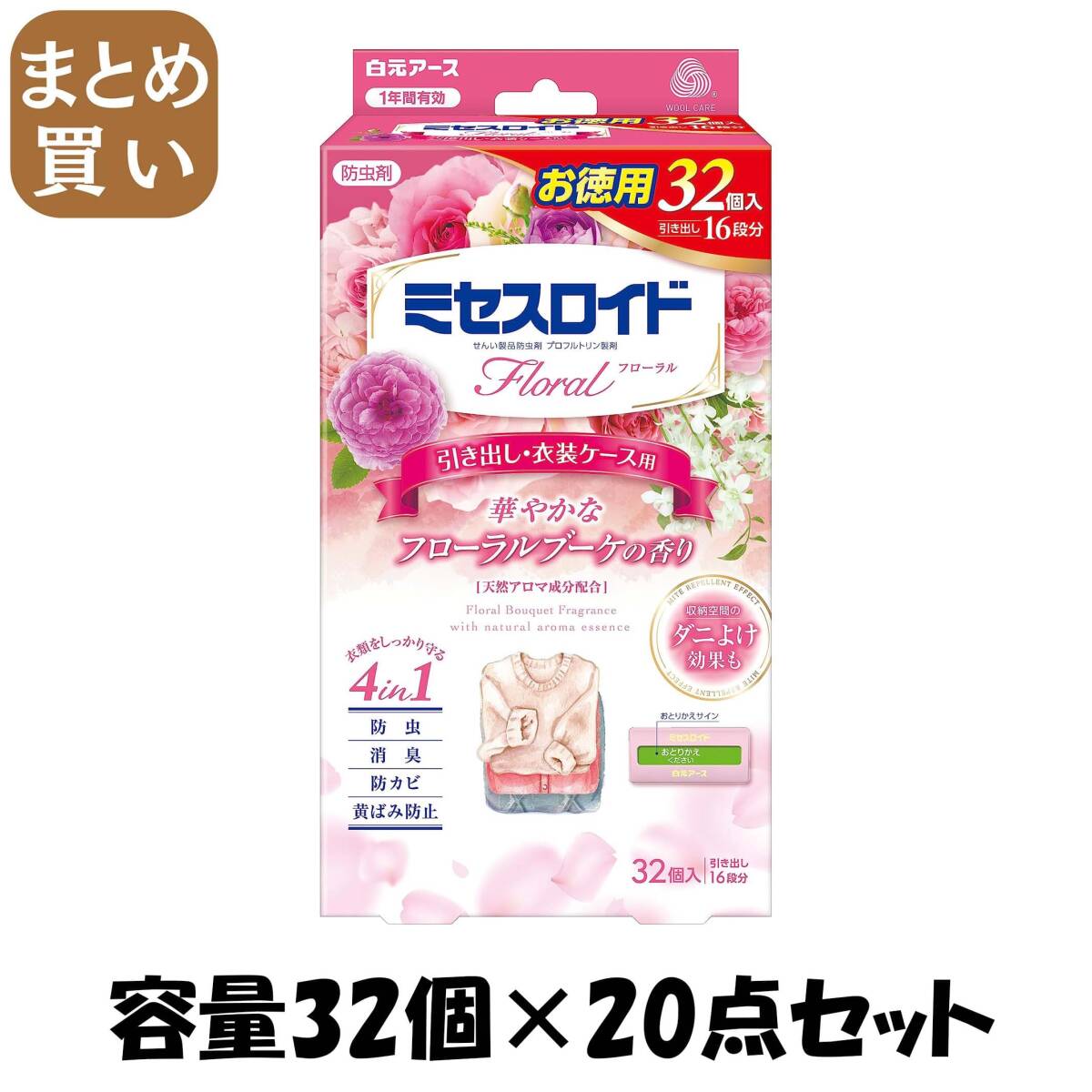 - 【まとめ買い】ミセスロイドフローラル 引き出し用 32個入 1年防虫 フローラルブーケの香り 容量32コ×20点セット白元アース