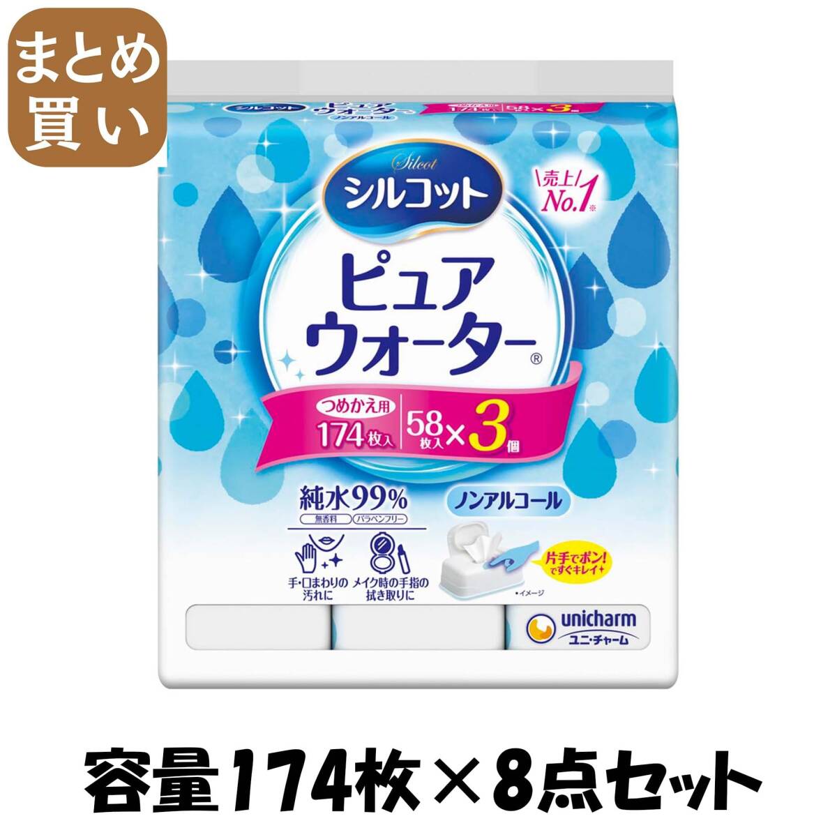 > 【まとめ買い】シルコットピュアウォーターウェットティッシュ詰替58枚×3 容量174マイ×8点セットユニ・チャーム ウェットティッシュ