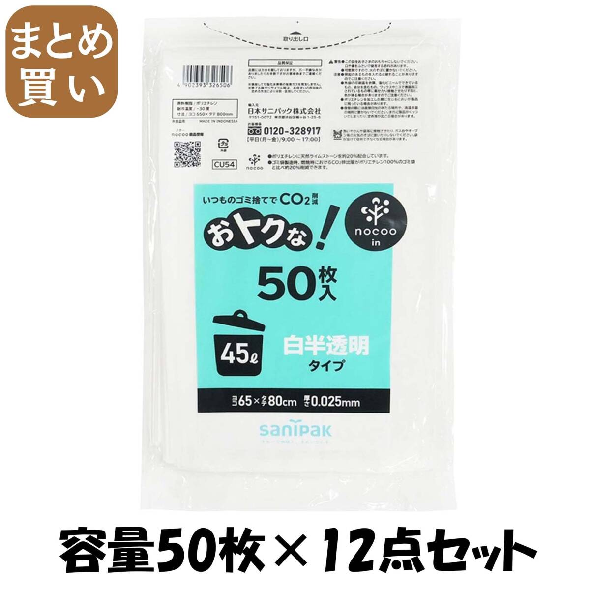 - 【まとめ買い】CU54 オトクナ 45L 白半透明 50枚 容量50マイ×12点セット 日本サニパック ゴミ袋・ポリ袋