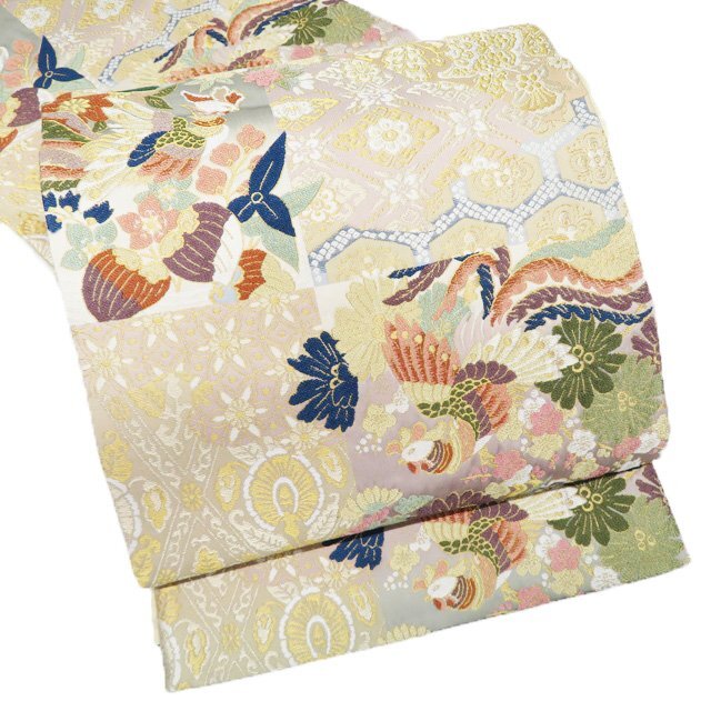 - 袋帯 中古 リサイクル 正絹 フォーマル 仕立て上がり 六通 花鳥模様 鳳凰 箔糸 マルチカラー 多色 金 きもの北條 A1248-16