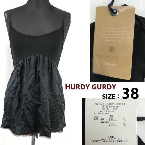 - 日本製/タグ付未使用品★HURDY GURDY/ハーディガーディ★シルクサテン/キャミソール【38/black/黒】silk/Tops/dress/Shirts◆sBH950