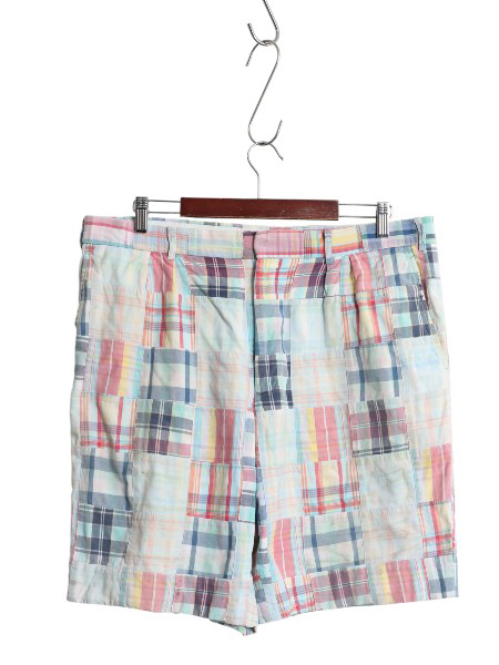 - インディアン マドラス チェック パッチワーク ショートパンツ メンズ 38 ショーツ ツータック コットン 短パン ハーフパンツ マルチカラー