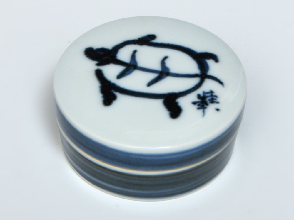 - 染付 亀絵 蓋物 京焼 木箱 陶磁器 合子 香合 茶道具 香道具 小物入れ u0714o