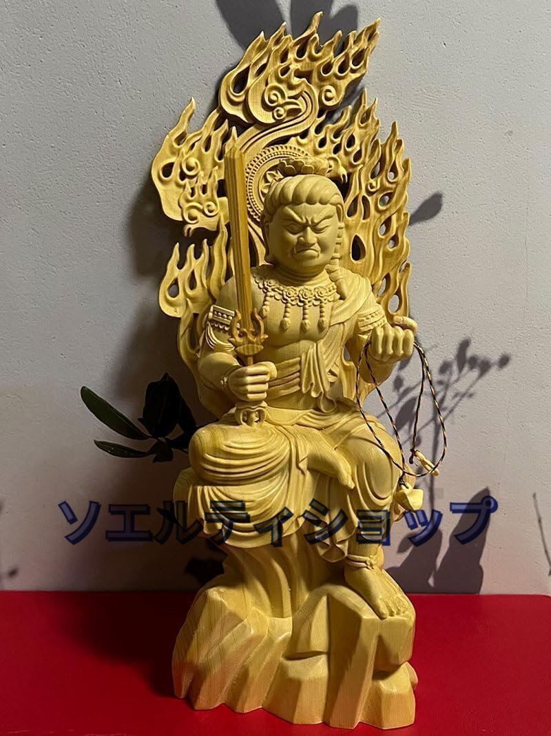 - 木彫り仏像【不動明王座像】真言宗脇仏(酉年生まれ)桧木製高級木彫り ◆厄除け十二支守り本尊・守護仏 高さ34cm