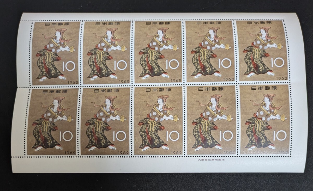 - 1962年・特殊切手-切手趣味週間シート(花下遊楽図)