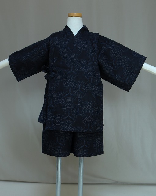 - 男の子用甚平 K2882-120-04 送料無料 じんべい 120サイズ 葵の紋入り 男児じんべい 綿100%で涼しい子供甚平