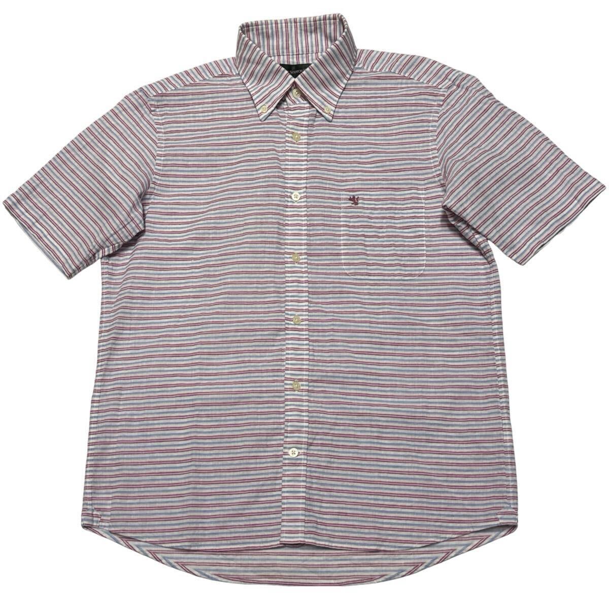 - THE SCOTCH HOUSE ザスコッチハウス 半袖ボタンダウンシャツ 刺繍 ボーダー麻混合 M