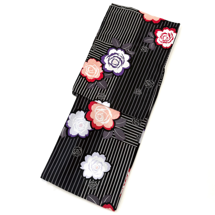 - 女性用 仕立て上がり 浴衣 プレタ ゆかた レディース 黒地 花柄 高級 女性浴衣 レディース浴衣 ポリエステル 単品