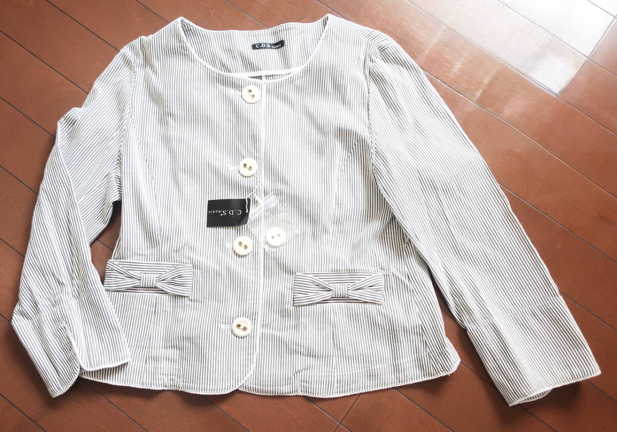 - C.D.S BASIC★爽やかストライプ ノーカラー サマージャケット【LL】未使用