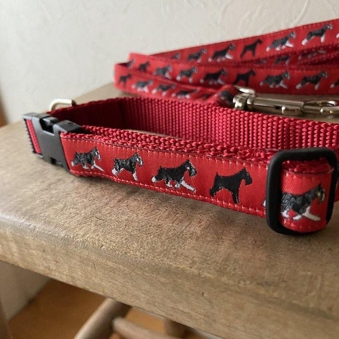 - ミニチュアシュナウザー・レッド 首輪&リードのセット アメリカ製