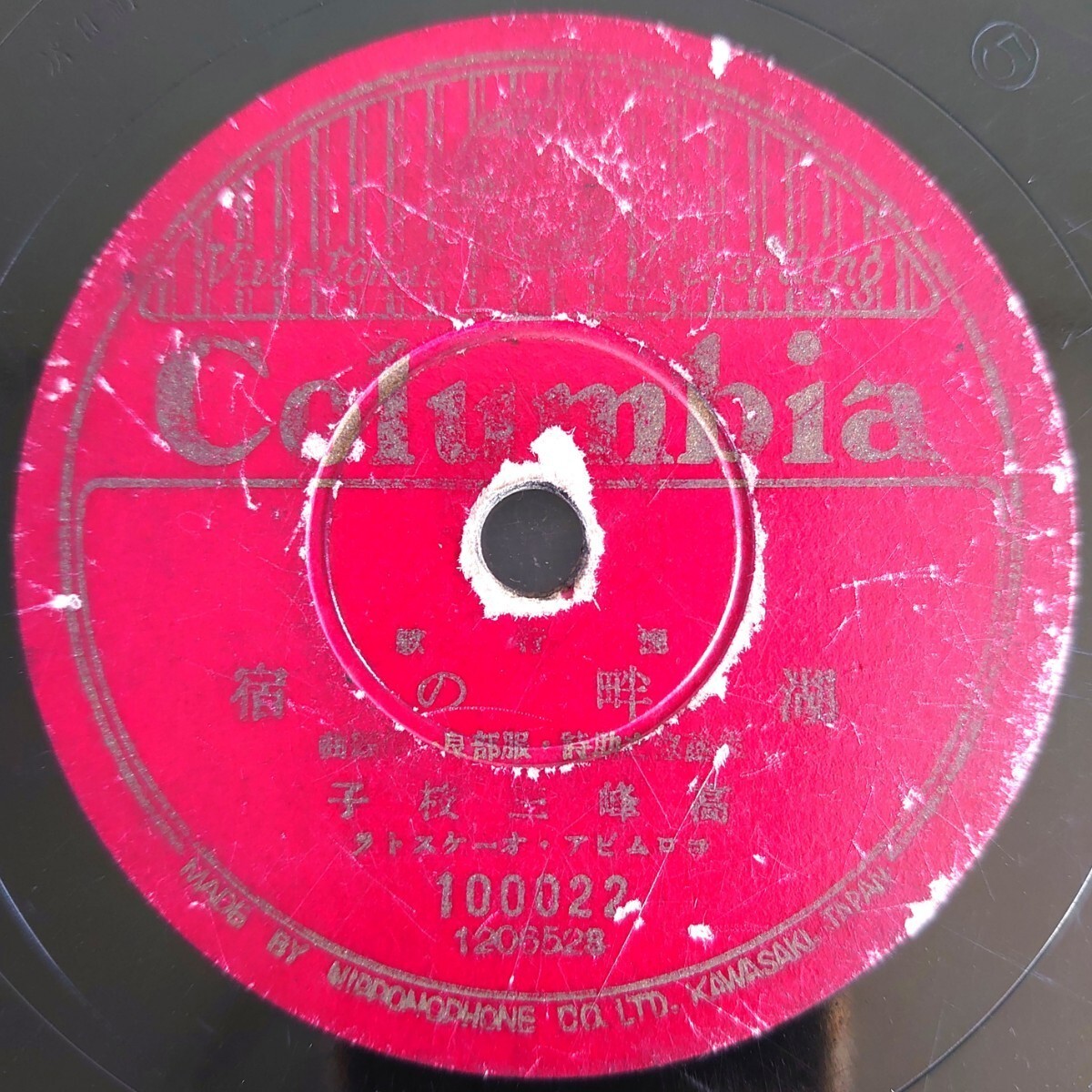 - 【SP盤レコード/ヒビ】Columbia 100022 流行歌/湖畔の宿 髙峰三枝子/高原の旅愁 伊藤久男