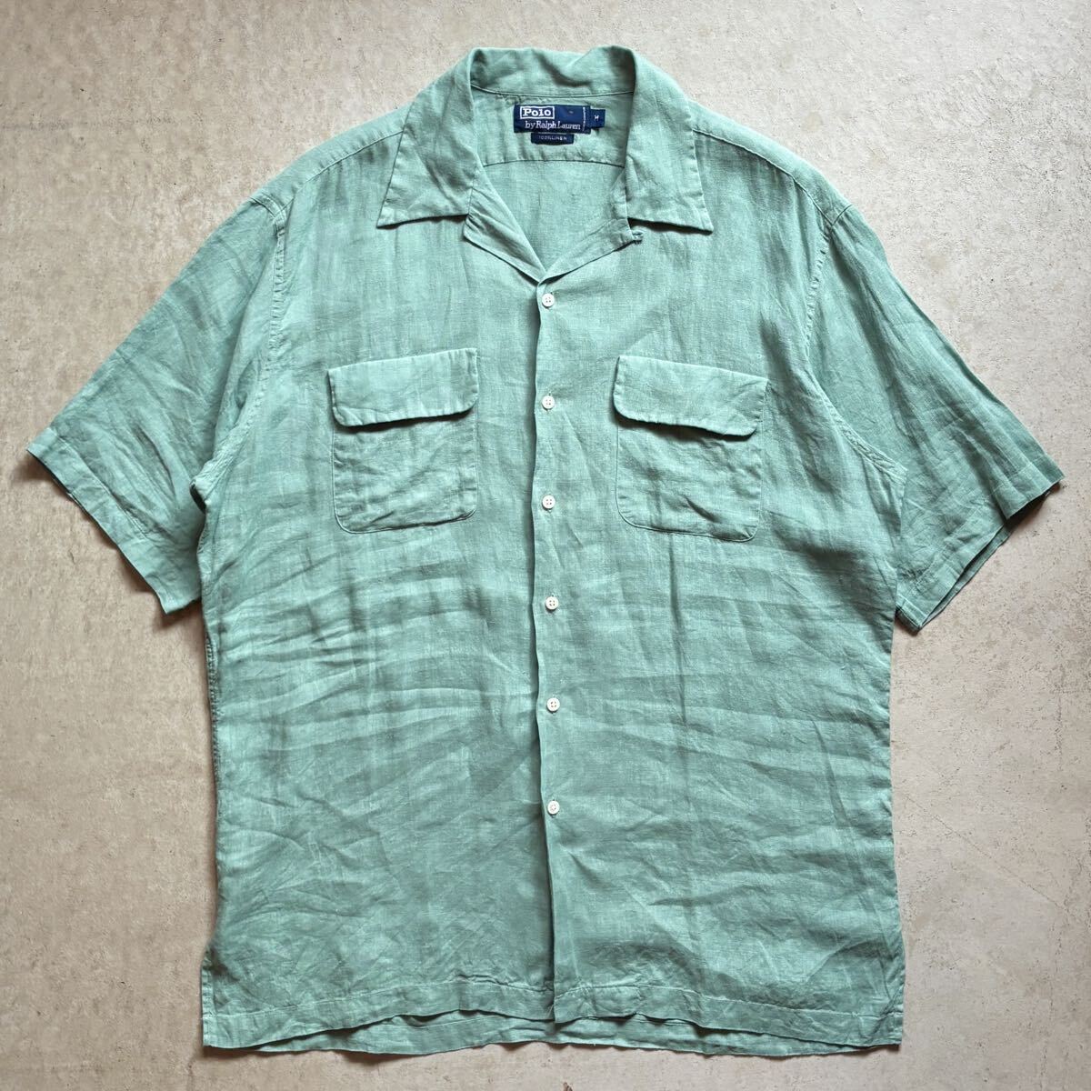 - 【90s】POLO RALPH LAUREN ポロラルフローレン 半袖 開襟シャツ オープンカラー リネン 麻 メンズ M 緑/Green メンズ M 無地 vintage 正規