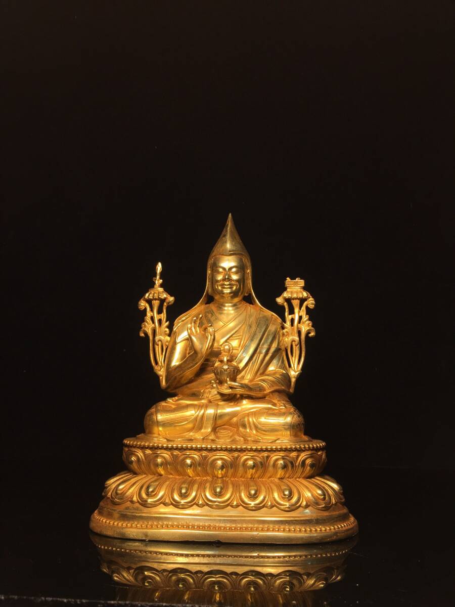 - 『館蔵珍品 銅製 塗金 宗喀巴像 仏像 宗教 仏教古美術 供養品』稀少珍蔵品 古賞物 貴重物品 収蔵品 中国古美術 時代物 古董品