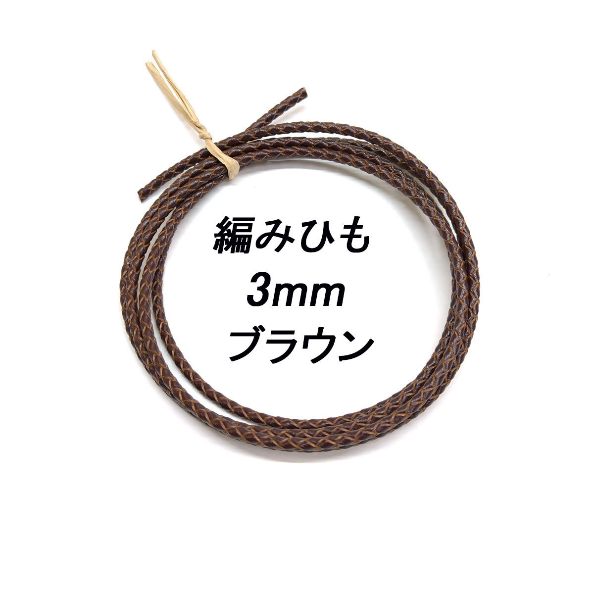 > レザークラフト /編みひも/3mm/ブラウン/ 1m単位 革ひも 編み紐 切り売り レザーコード 素材 ネックレス ブレスレット ストラップ