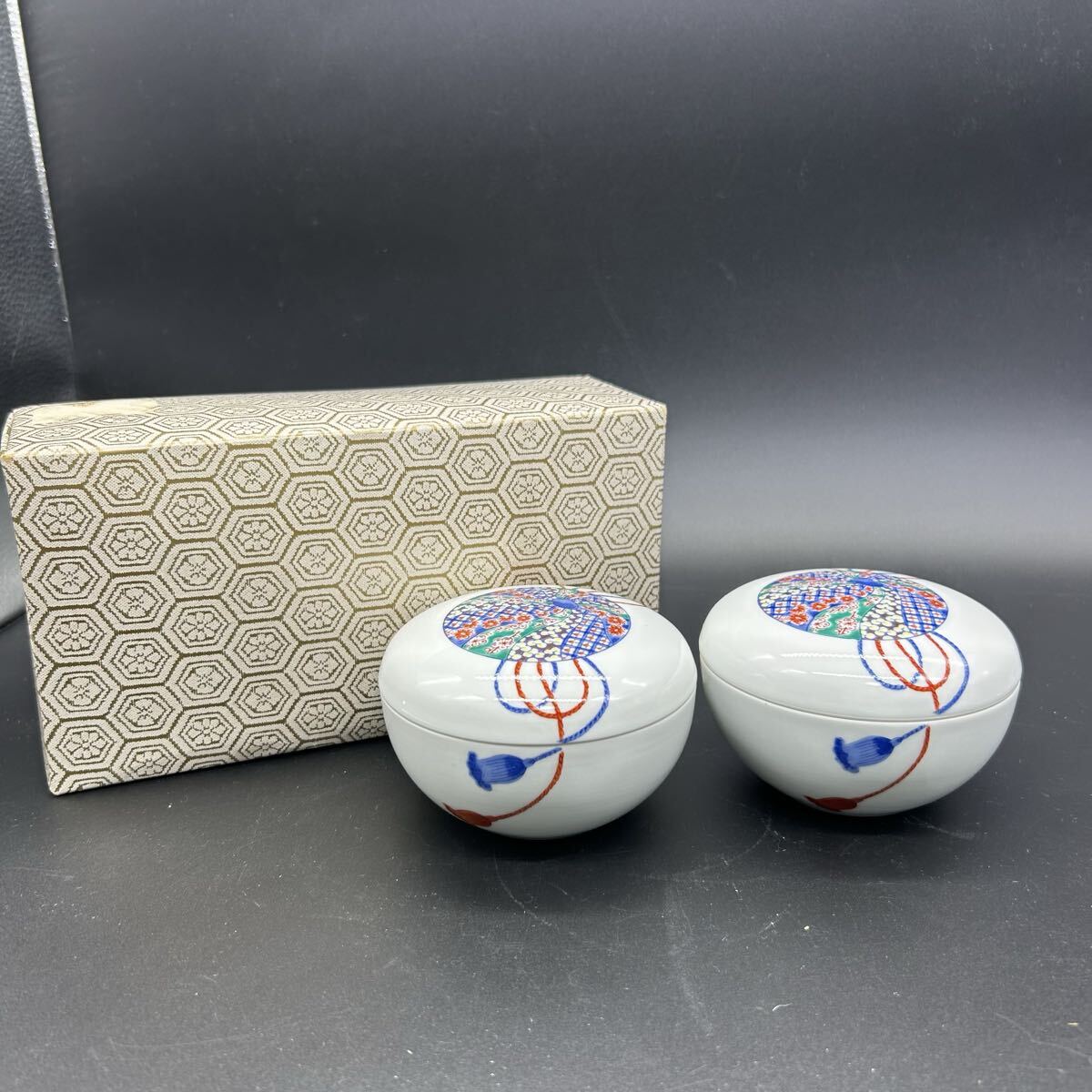- 有田焼 蓋付き小鉢 秀峰 小鉢 手毬の絵柄 和食器 エ9