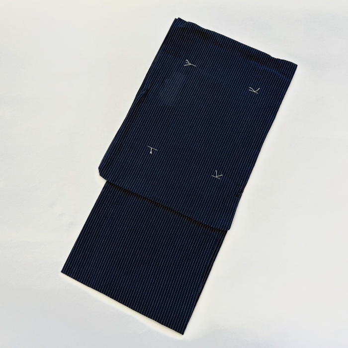 - 綿麻 メンズ浴衣 Mサイズ ゆかた 紺 縞 ストライプ 男性 仕立て上がり 夏 和装 柄 単品