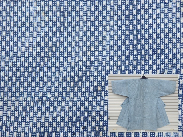 - ●木綿着物:11:●襦袢●型染:小紋柄●織●藍染●仕付け糸●保存状態良好●