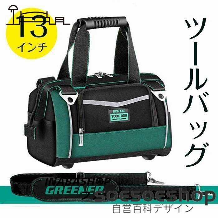 - ツールバッグ 工具バッグ 工具袋 道具袋 工具差し入れ 大口 大容量 工具 大工道具 肩掛けベルト付き 大口収納 オックスフォード