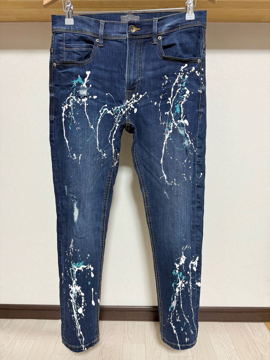 - 伸縮性抜群 春夏 ペイント ZARA MAN ストレッチ スキニー 送料230円 40 31 ダメージ ウルトラ デニム パンツ ジーンズ ネイビー メンズ