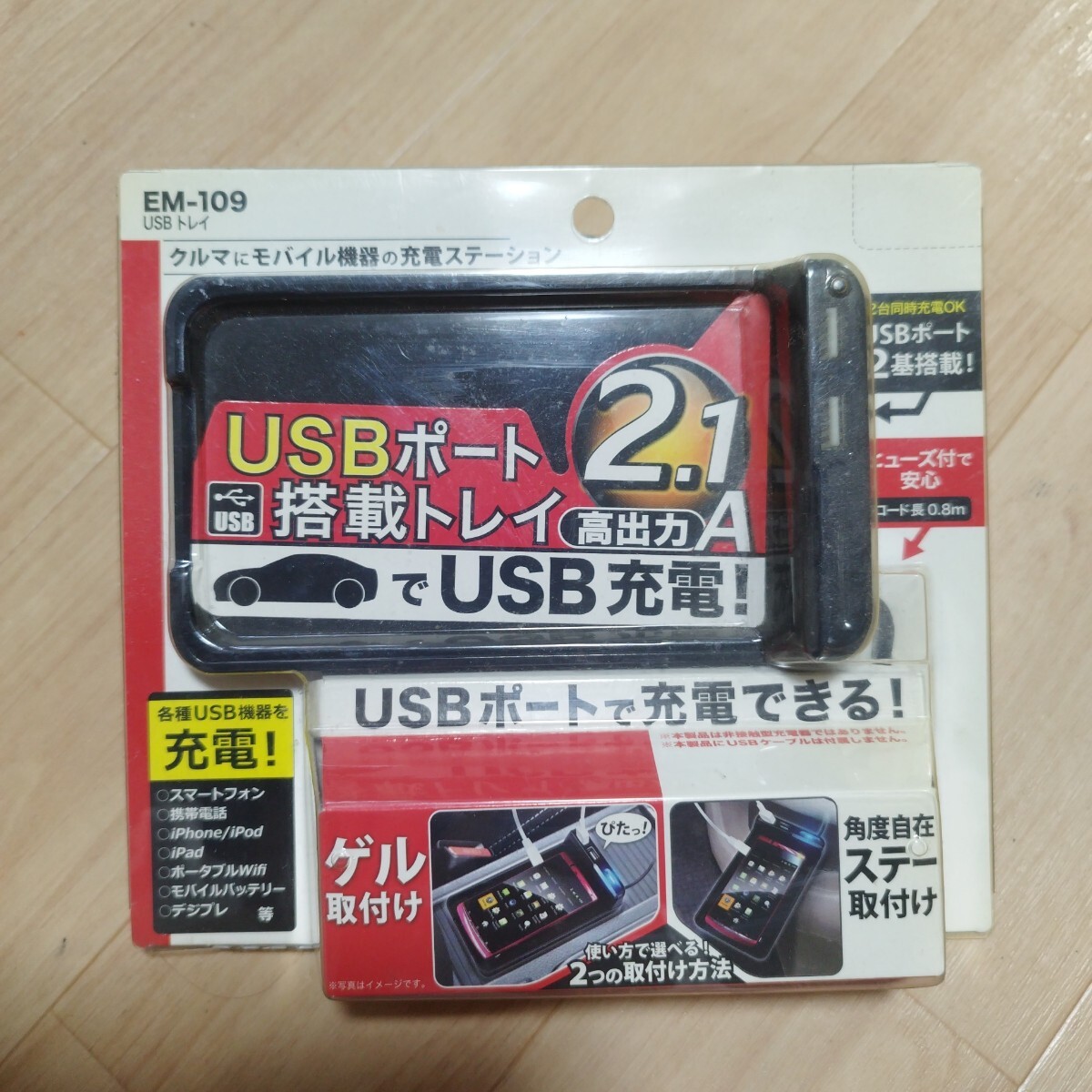 - 未使用 充電ステーション USBポート トレイ EM-109 12V車専用/車内USB充電 スマホ カー用品 星光産業