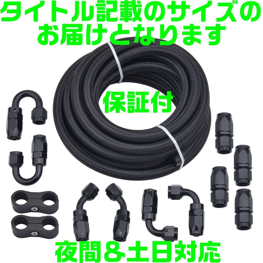 > 【AN10】【黒&黒】【夜間&土日対応】ナイロン メッシュホース オイルクーラー セット 5m ホースエンド セット フィッティング アダプター