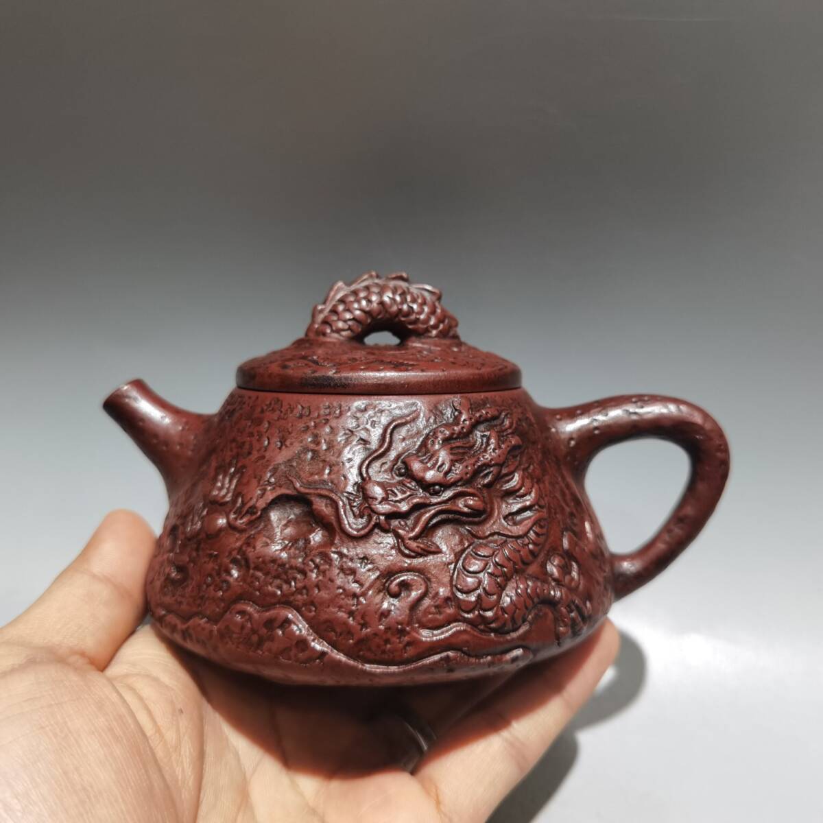 - 『館蔵珍品 紫砂壺 石瓢龍壺 徐如蕾款 紅泥 紫砂壺 茶具 茶道品』稀少珍蔵品 古賞物 貴重物品 収蔵品 中国古美術 時代物 古董品