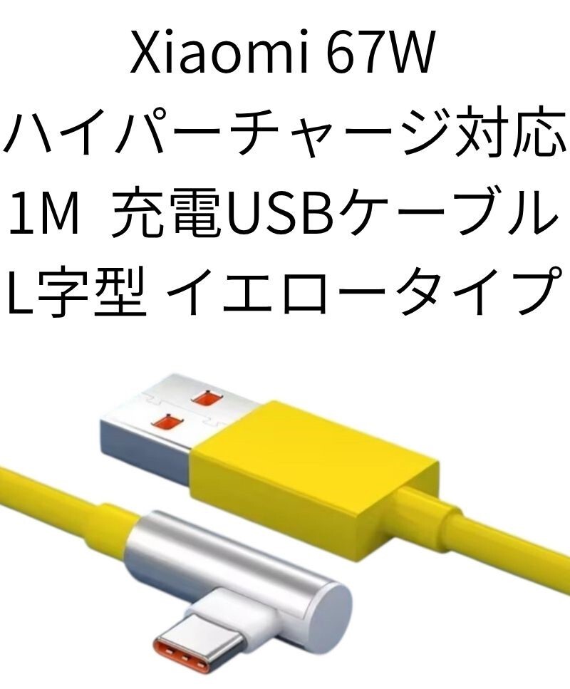 - 【Xiaomi ハイパーチャージ対応】Xiaomi 67W対応 ハイパーチャージ L字型USBケーブル 1m USBType-C イエロー