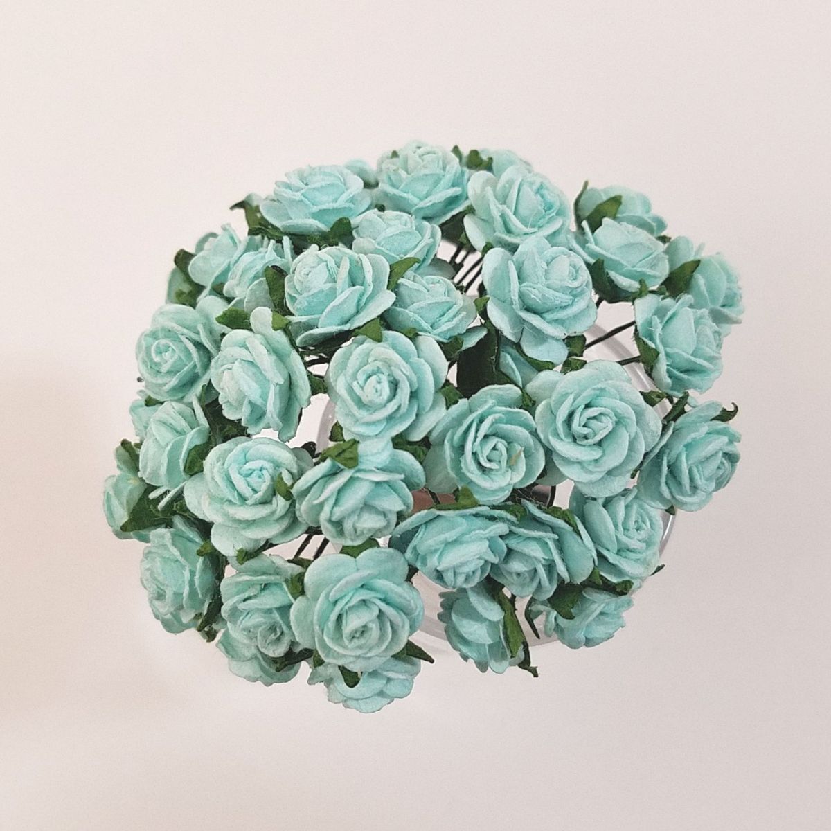 - 造花[ミニ・ペーパーフラワー バラ(水色 #167) 直径約15mm 50本] ハンドメイド リース アートフラワー コサージュ