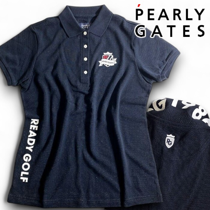 - PEARLY GATES パーリーゲイツ 定価1.8万 日本製 鹿の子 エンブレム刺繍 半袖 ポロシャツ ゴルフ レディース 2160102 120 1 ▲021▼50804w03