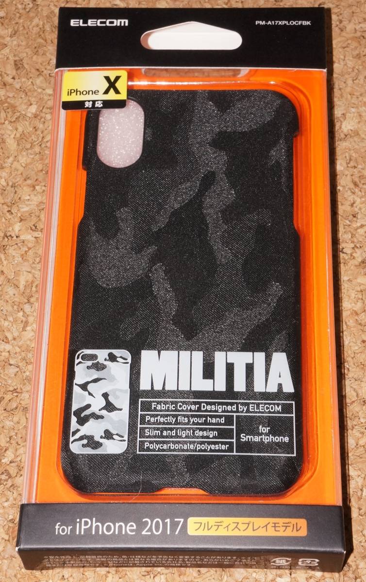 > ★新品★ELECOM iPhone X/XS オープン ファブリックカバー MILITIA カモフラージュ ブラック