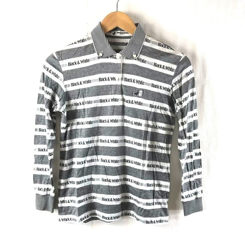 > ブラック&ホワイト Black&White SPORTSWEAR ポロシャツ 長袖 ロゴ入り ボーダー 犬 刺繍 綿100% 白 グレー系 7サイズ 2025071900071