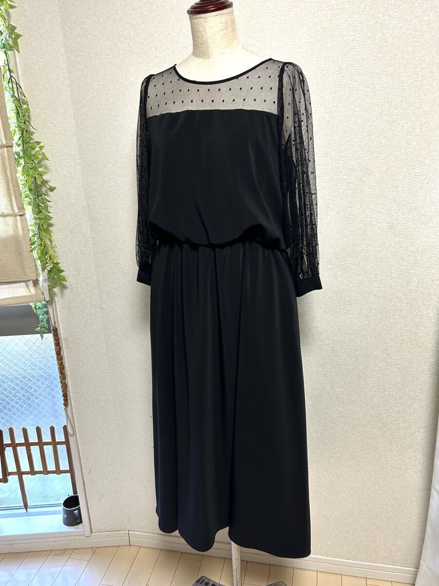 - 12000円タグ【apart by lowrys ★アパートバイローリーズ】ドットチュール仕様ワンピース・ブラック・Lサイズ
