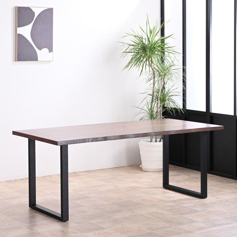 - 新品 ダイニングテーブル 幅180cm 天然木 ウォールナット材 なぐり加工 無垢 アイアン 食卓 モダン おしゃれ テーブル outlet:ST10-18W01