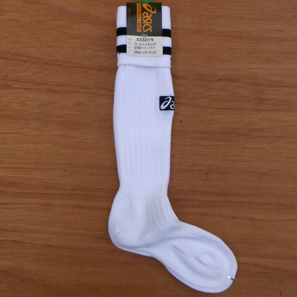 - 未使用 '90s asics FOOTBALL GEAR ストッキング ハイソックス 20cm アシックス 19~21cm 白x黒 ロゴ刺繍パッチ ヴィンテージ デッドストック