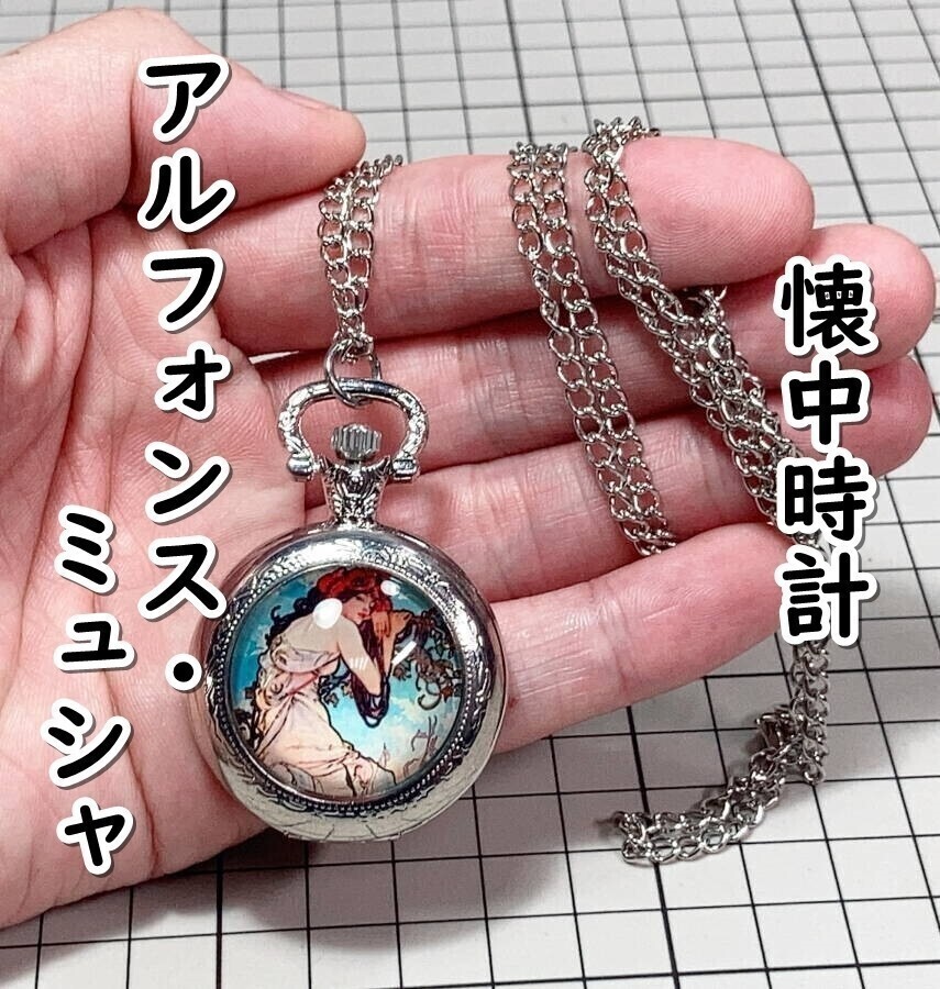- ▲棚:V_H7【懐中時計 アルフォンス・ミュシャ #連作 四季 夏:シルバー】sa_wjig S08-06