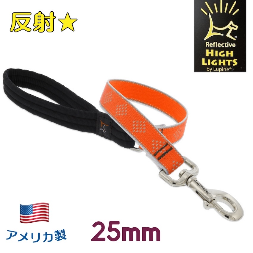 - 60cmショートリード 反射オレンジダイヤモンド柄 25mm幅 LUPINEルパイン パッド付き アメリカ製 軽量丈夫 Reflective High Lights