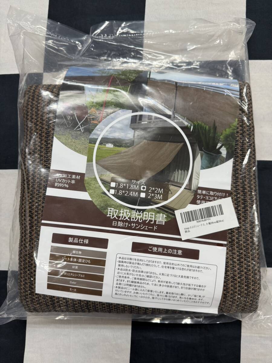 - Attrape日除けサンシェードモカ2x2mUVカット95%紫外線カットオーニングシートベランダ庭窓目隠夏日よけ遮熱光ポリエチレン取付簡単ロープ付