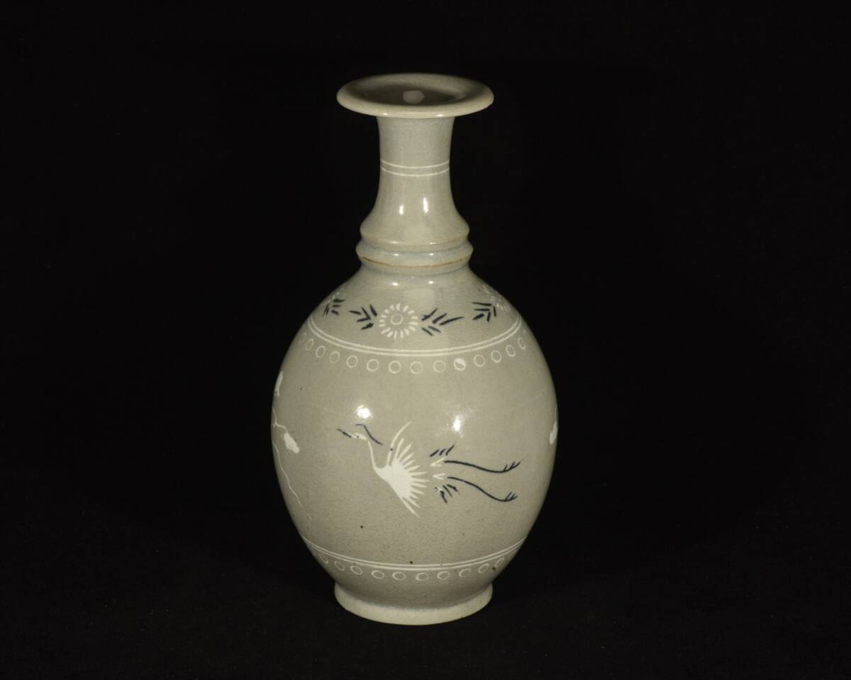 - ■TC155■高麗青磁 象嵌雲鶴紋長頚浄水瓶 孤品・時代物 古玩 唐物 古陶磁器■