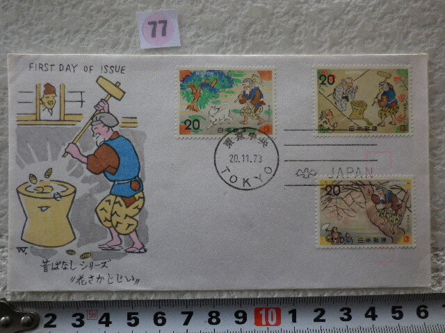 - FDC 昔ばなし 花さかじじい 3貼1消 1973年 解説書有 松屋●77●同梱大歓迎