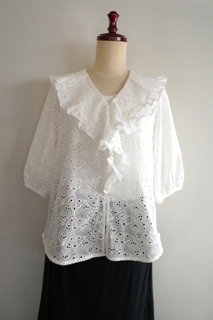 - 2025 fredy emue フレディ エミュ コットン レース フリルカラーブラウス 羽織 オフホワイト サイズ38 /ノーリーズ NOLLEY'S